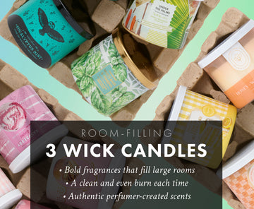 Three wicks mean three times the flame—and that makes all the difference in how your candle burns and how your home smells.