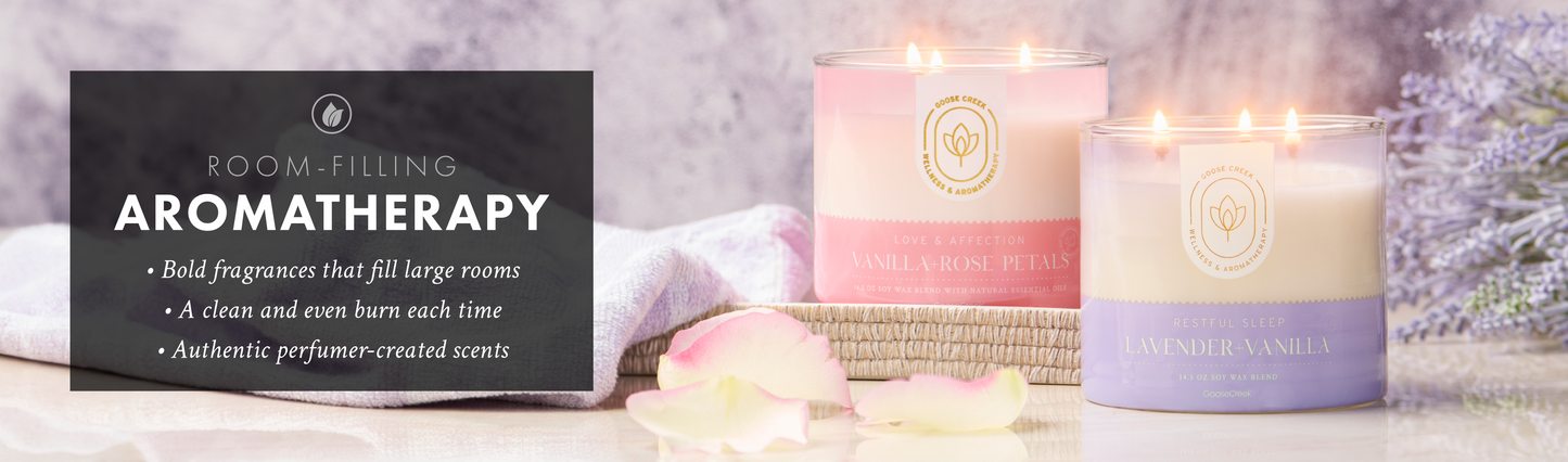 Goose Creek 3-Wick Candles are 14.5oz and are designed to quickly fill large spaces with fragrance. Each candle is highly scented using some of the most premium fragrance oils and essential oils on the market. Each candle burns for up to 45 hours with 100% lead-free wicks. Our premium wicks prevent excessive smoking and sooting, ensuring a clean and long-lasting burn. Made from our unique, proprietary soy wax blend, each candle is poured using top-quality ingredients.